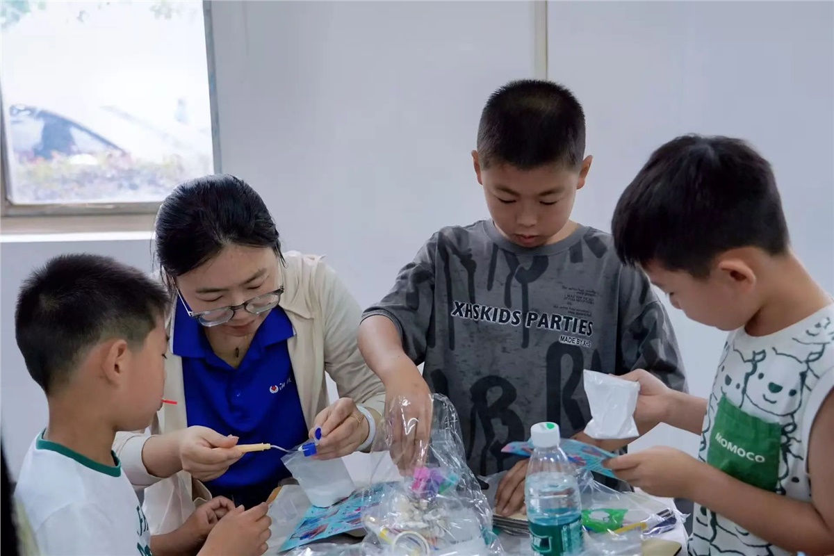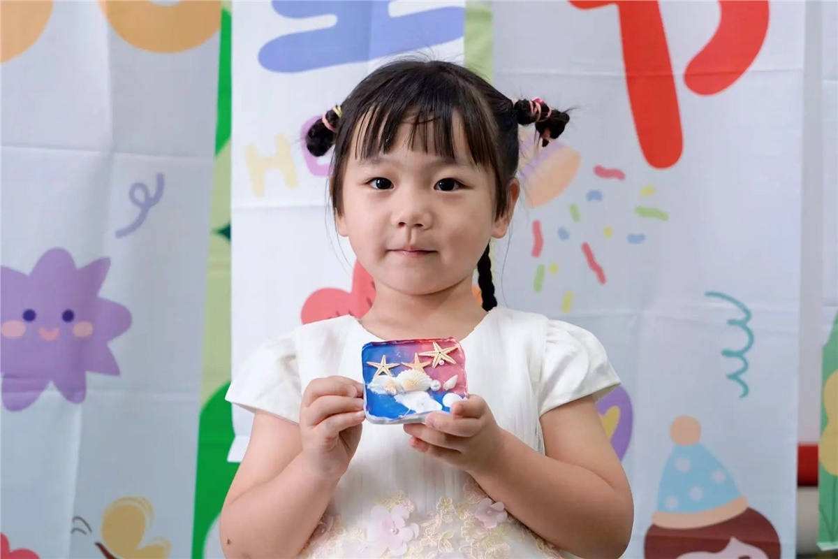 ▲在父母的陪伴與引導(dǎo)下,萌娃們用巧手將色彩斑斕的材料變?yōu)橐幻睹丢?dú)一無(wú)二的創(chuàng)意冰箱貼。