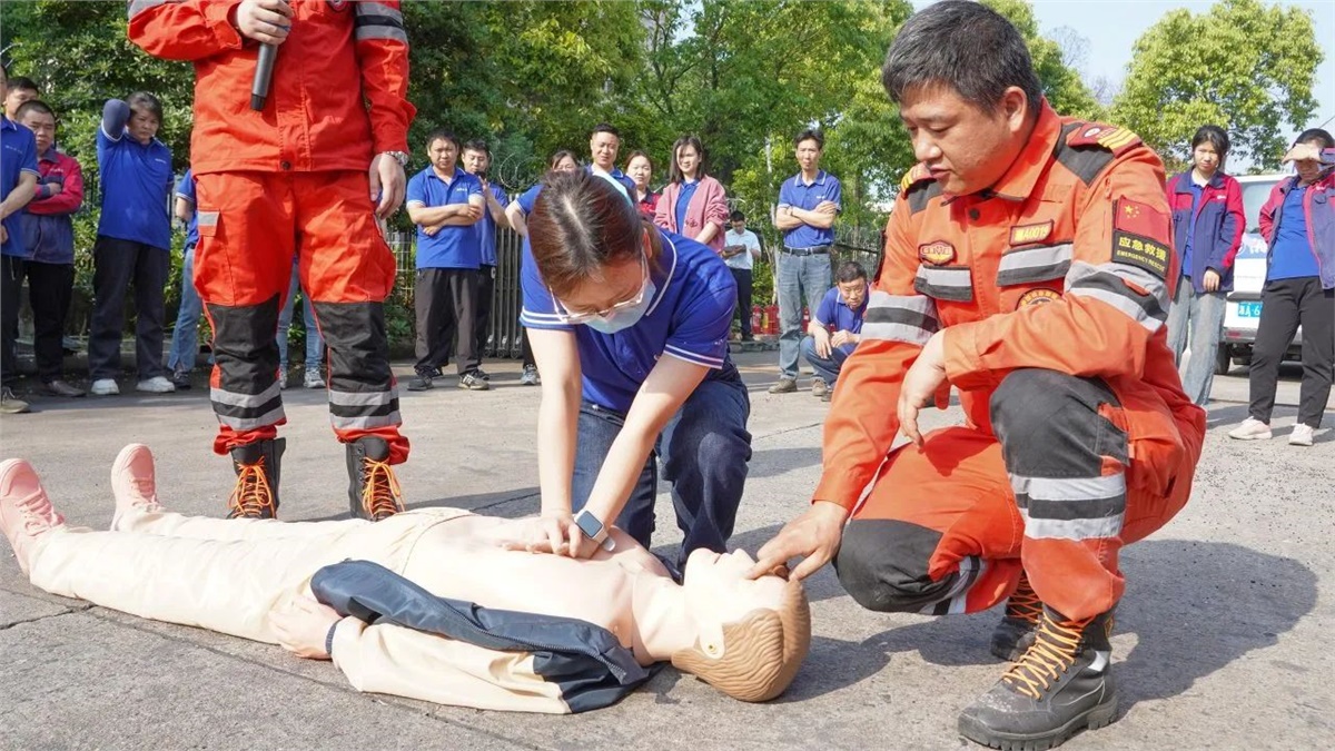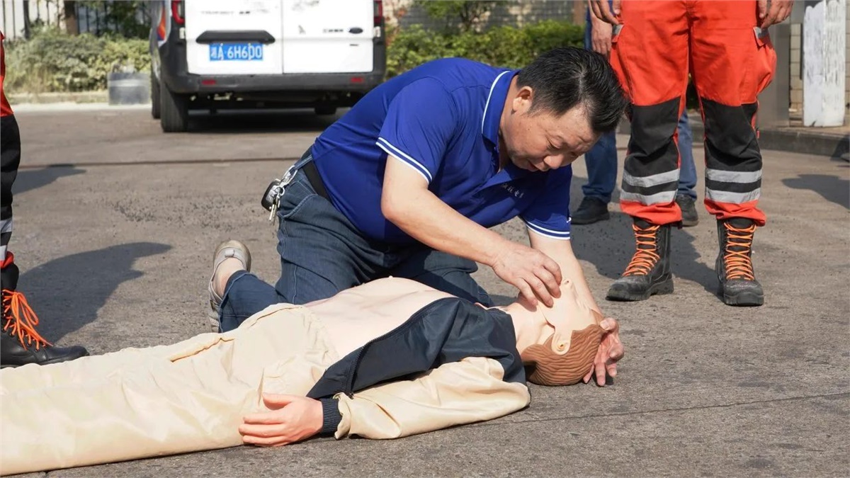 隨后,在現(xiàn)場設(shè)置的模擬“起火點(diǎn)”,大家有序排隊(duì)進(jìn)行了滅火器實(shí)操演練,以確保每位員工都能正確掌握滅火器的使用方法。同時(shí),現(xiàn)場也模擬了心肺復(fù)蘇(CPR)急救和有限空間作業(yè)應(yīng)急救援等場景,完整呈現(xiàn)了“火災(zāi)發(fā)生—緊急疏散—現(xiàn)場救援—120轉(zhuǎn)運(yùn)”的全流程,整個(gè)實(shí)操演練過程組織嚴(yán)密、分工明確,達(dá)到了既定的演練目標(biāo)和成效。