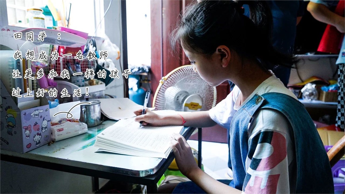 田同學:12歲,母親患非小細胞肺癌,需要長期治療,家中還有讀幼兒園的弟弟,父親在家附近打零工,家庭負擔重,經(jīng)濟條件拮據(jù)。田同學希望自己能夠努力學習,考一個好大學,幫助父親緩解家庭重擔。
